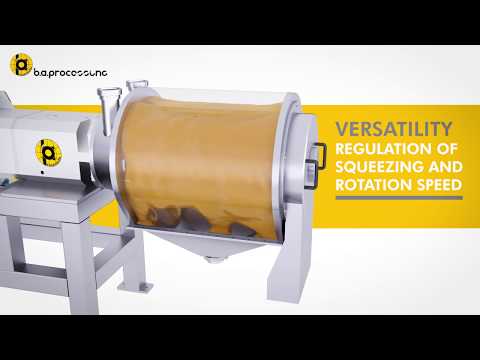 Macchina per l'estrazione e la separazione delle fibre dalla polpa di frutta e verdura. Questa macchina può essere utilizzata con frutta e verdura calde, calde e fredde, senza pezzi, pre-tritata in piccole parti. La macchina può essere utilizzata come "monostadio" per piccole produzioni o in "doppio stadio" per grandi produzioni o per affinamenti molto sottili.